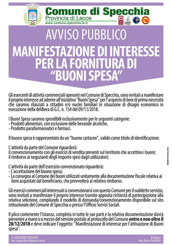 Gli esercenti di attività commerciali operanti nel Comune di Specchia, sono invitati a manifestare il proprio interesse ad aderire all’iniziativa “Buoni Spes...
