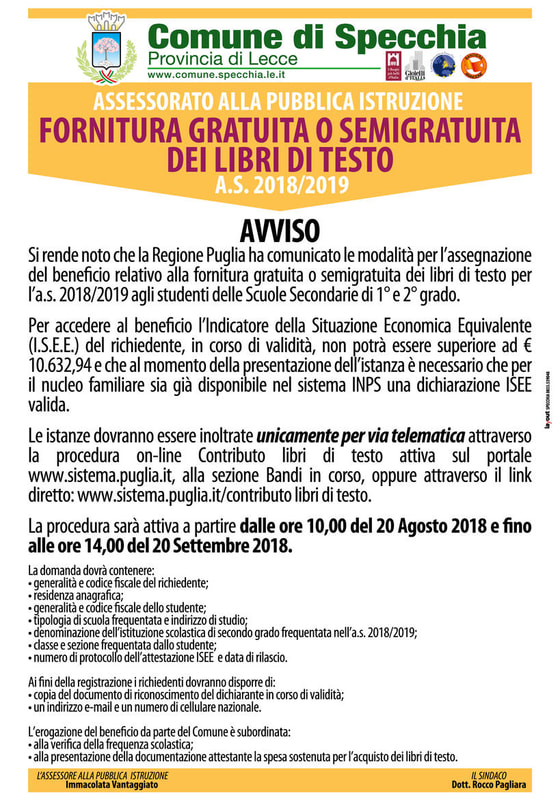 In riferimento al contributo per la fornitura dei Libri di testo delle scuole secondarie di I e II grado per l'a.s. 2018/2019 la Regione Puglia ha emanato l'...