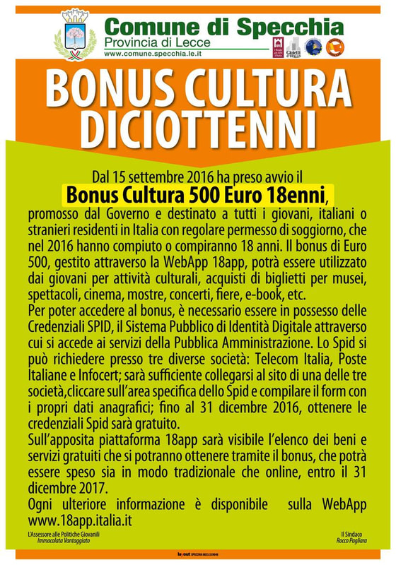 PROMOSSO DAL GOVERNO E DESTINATO A TUTTI I GIOVANI, ITALIANI O STRANIERI RESIDENTI IN ITALIA CON REGOLARE PERMESSO DI SOGGIORNO CHE NEL 2016 HANNO COMPIUTO O...