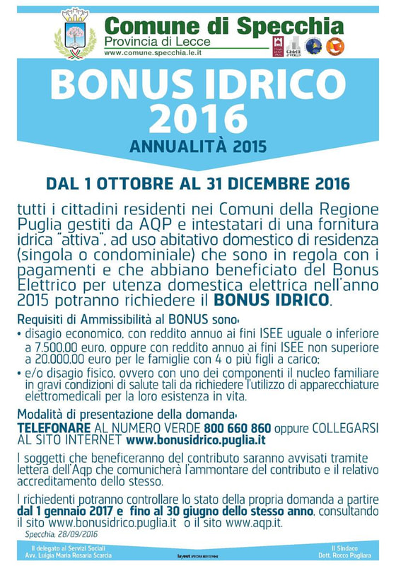 BONUS IDRICO PUGLIA 2016 - ANNUALITA' 2015 DOMANDE DAL 01 OTTOBRE AL 31 DICEMBRE 2016