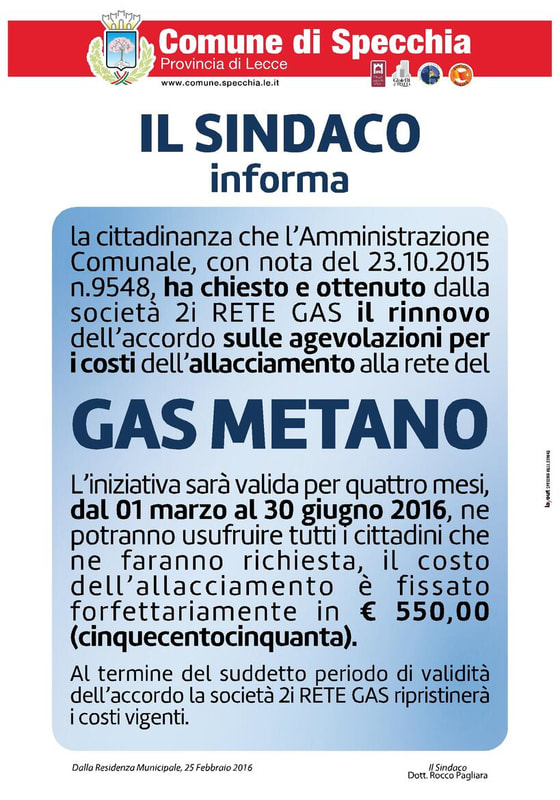 L'Amministrazione Comunale ha ottenuto il rinnovo dell'accordo sulle agevolazione per il costo di allacciamento alla rete gas metano. L'iniziativa sarà vali...