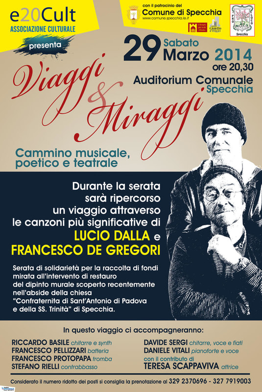 Con il patrocinio del Comune di Specchia l'Associazione Culturale E20CULT presenta: VIAGGI & MIRAGGI Cammino musicale, poetico e teatrale Sabato 29...