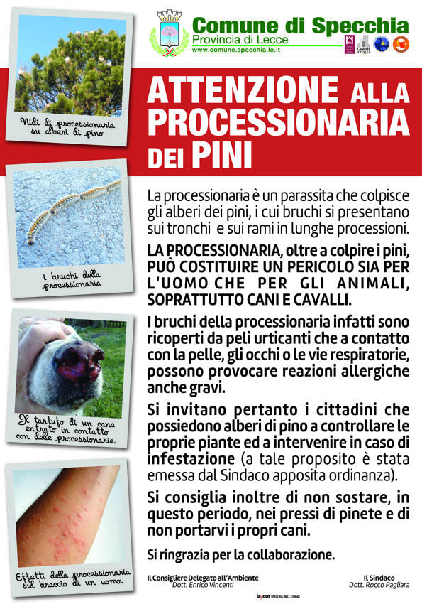 i bruchi della processionaria infatti sono ricoperti da peli urticanti che a contatto con la pelle, gli occhi o le vie respiratorie possono provocare reazioni allergiche anche gravi.