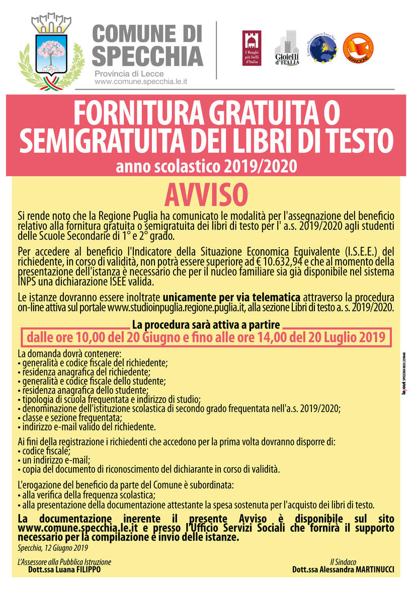 Descrizione FORNITURA GRATUITA O SEMIGRATUITA DEI LIBRI DI TESTO - ANNO SCOLASTICO 2019-202 Galleria immagini Libri di Testo 2019 20