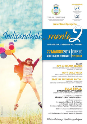 Il comune di Specchia in collaborazione con l'Ambito territoriale di Gagliano del Capo e l'Istituto Comprensivo Alessano - Specchia invita tutti i cittadini a partecipare alla serata conclusiva del Progetto "Indipendente...mente 2" rivolto ai ragazzi della scuola secondaria di I grado di Specchia finalizzato alla "prevenzione in materia di dipendenze patologiche".