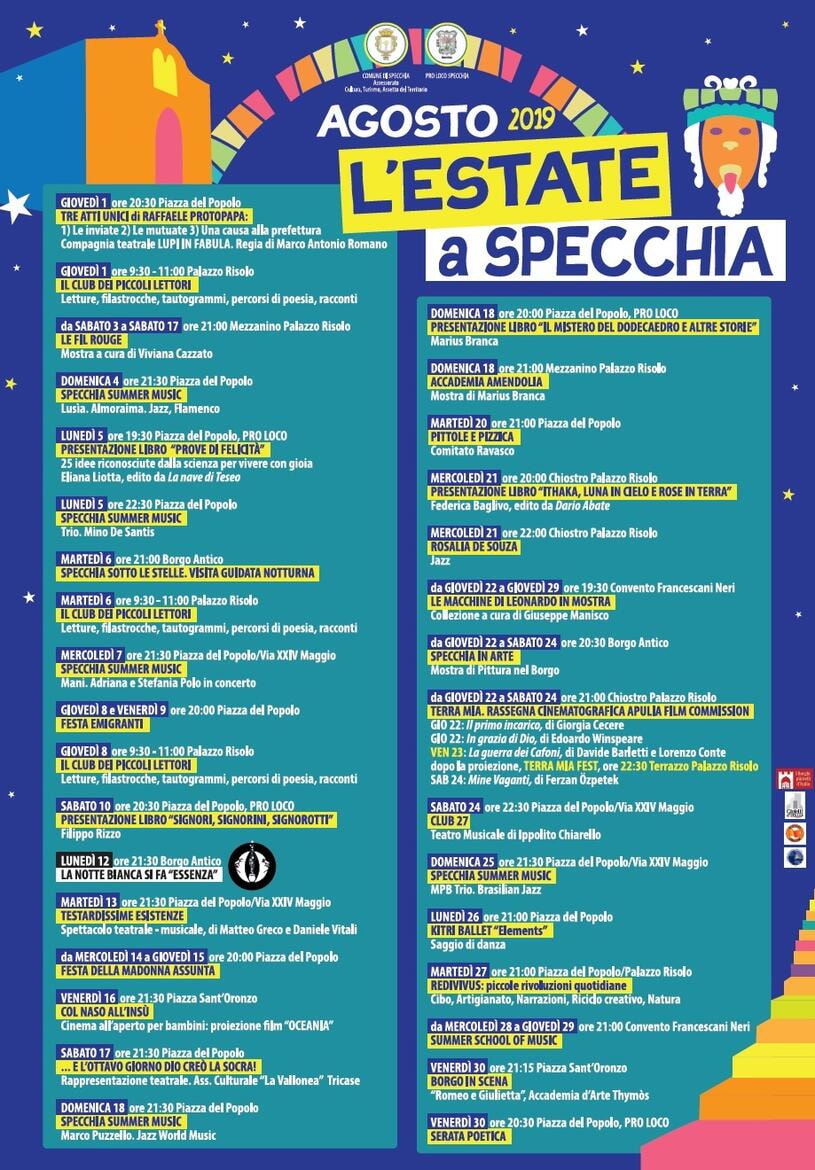 Programma estate specchiese agosto 2019